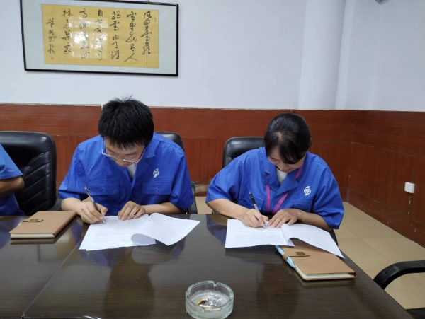 師傅代表王海玲在表態(tài)發(fā)言中說到:感謝公司給予的肯定和信任,在今后的工作中嚴格履行師傅職責,將工作經(jīng)驗、崗位技能毫無保留地傳授給徒弟,做好徒弟工作上的啟蒙老師。徒弟代表羅國華在承諾表態(tài)中說到:感謝公司搭建的學習平臺,珍惜學習機會,虛心向師傅學習請教,聽從師傅安排,爭取早日成長為能獨當一面的技術骨干。